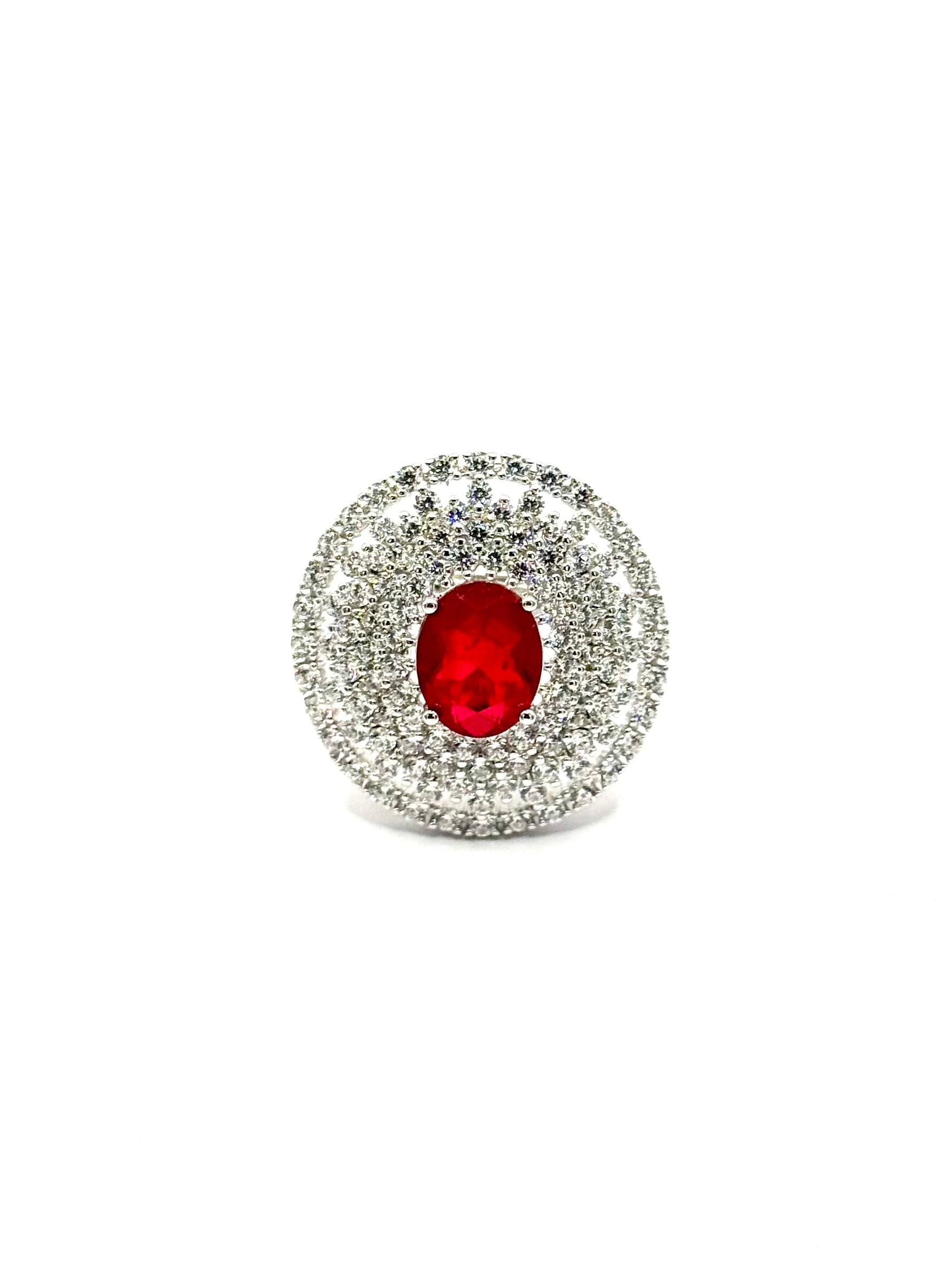 anello in argento 925% con zaffiri bianchi e rossi incastonati