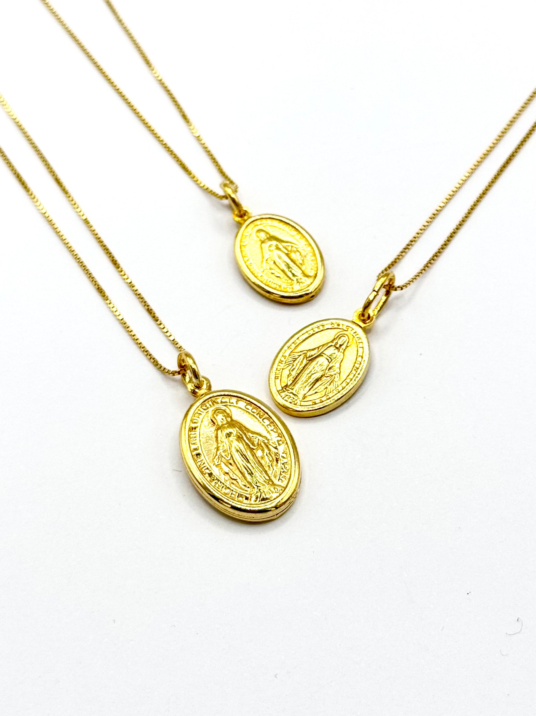 Collana In Argento 925% Dorato Con Ciondolo Madonnina Miracolosa