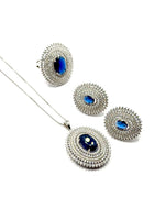 tutto in argento 925% con zaffiri bianchi e blu incastonati