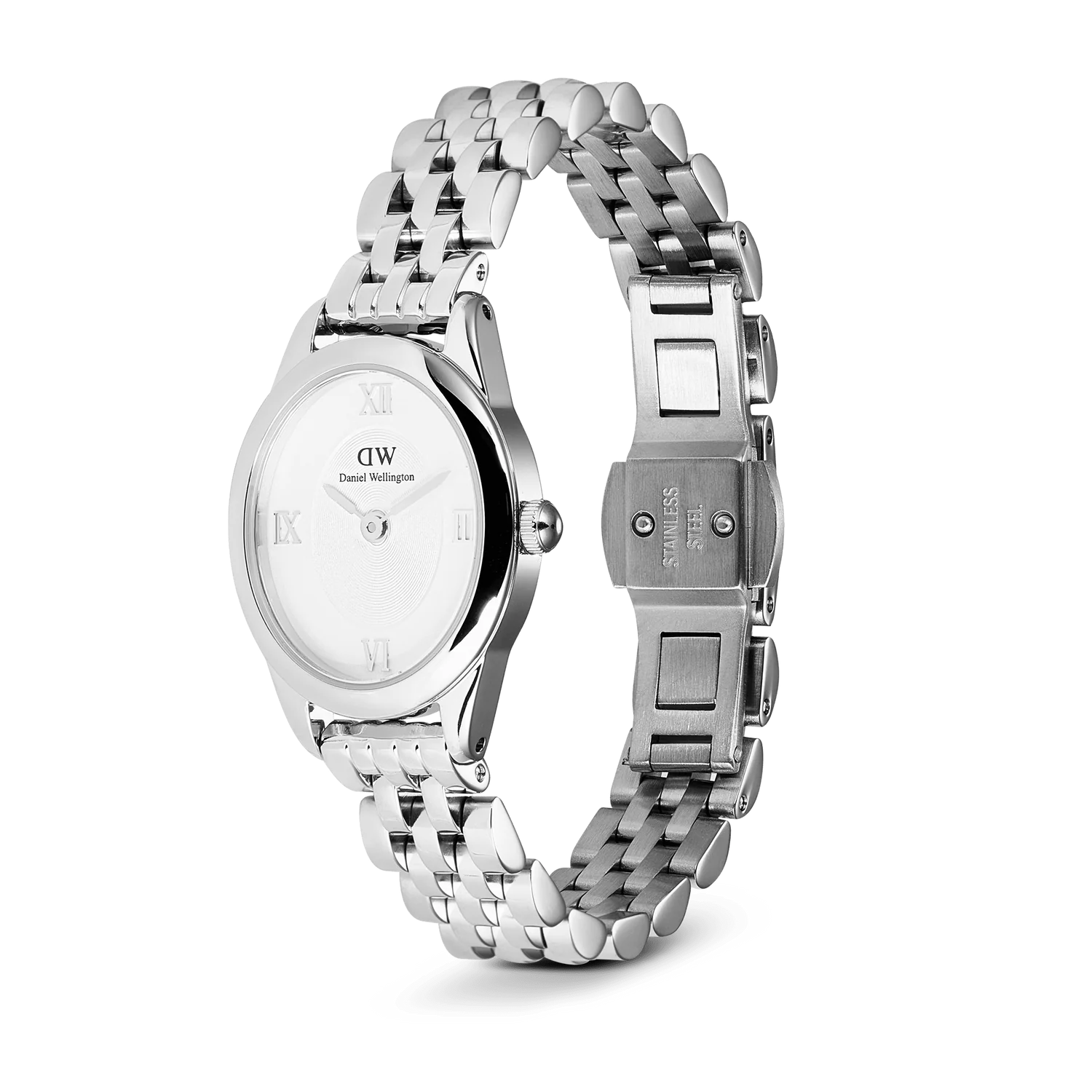 L’orologio Ophelia Mini Watch vanta un quadrante dall’elegante forma ovale che si discosta dagli orologi tradizionali. Questo orologio da donna dallo stile inimitabile sa essere un piacevole inedito. Vanta un nuovo cinturino a maglie a fagiolo e una chiusura a farfalla. La cassa ovale leggermente più corposa esalta la sua elegante silhouette, mentre le anse affusolate garantiscono una transizione fluida al bracciale a maglie. L’orologio vanta numeri romani in metallo incastonati in una trama circolare al centro del quadrante radiale, mentre sia la cassa che il bracciale sono lucidati per creare una finitura scintillante e vistosa.