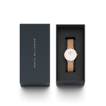 Petite Melrose presenta un quadrante bianco guscio d'uovo e un cinturino in maglia in oro rosa innegabilmente elegante. Questo orologio valorizza il tuo abbigliamento quotidiano, il tuo umore e il tuo spirito.